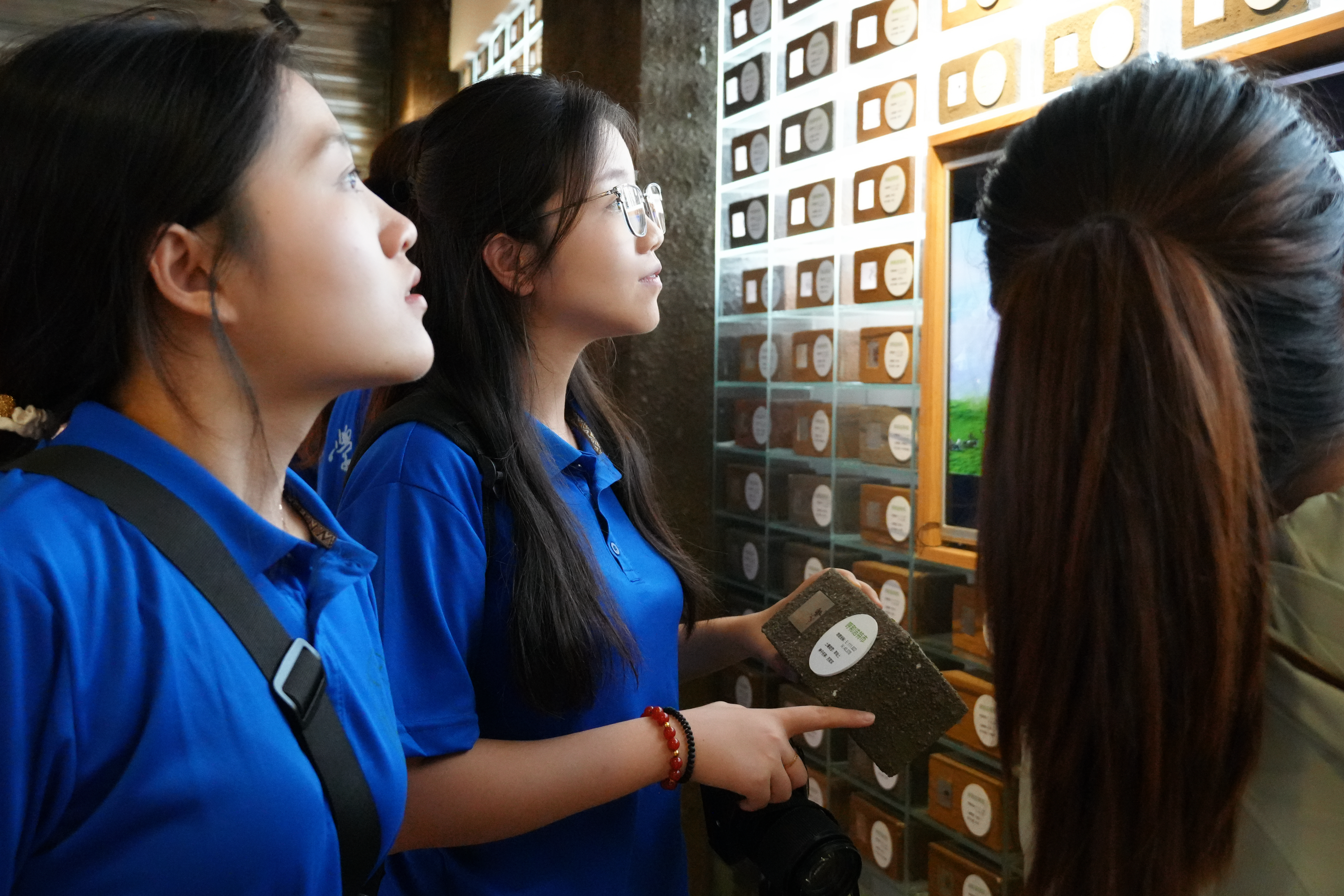 走进蒙草种业中心,实践团实地观摩了保存2000余份种质资源的“草原基因库”,系统地了解抗旱、耐寒乡土草种的选育流程与生态应用。团队成员注意到,展厅内的半圆形建筑结构实现雨水循环用于水产养殖,玉米纤维制成的可降解种子绳正应用于退化草地修复。“这些创新不是凭空想象,而是对‘问题导向’的精准回应。农业的价值从来不只是产出,更在于用循环思维连接生态与产业。”通过工作人员讲解,团队认识到农业科技的价值核心在于将生态资源转化为可持续产业链基础,而种业正是撬动这一转化的关键支点。