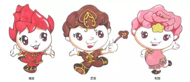 吉祥物是由一组三个不同的娃娃仙子构成,吉祥物各有一个可爱的名字“瑰宝、芝宝、和宝”,塑造了活泼可爱、欢乐吉祥的卡通人物形象。创作者把灵山的地域、文化融入到吉祥物身上,希望通过“瑰宝、芝宝、和宝”的形象宣传灵山,将灵山的特色文化展现给世人。吉祥物结合中国传统服饰特点,彰显出灵山小镇悠久历史沉淀及文化内涵。活泼奔跑的姿势灵性四射,充满强烈的感染力和亲和力,寓意着对玫瑰节圆满开幕的喜悦,张开的双臂是对五彩缤纷生活的向往,也是对五湖四海朋友的热情邀约。