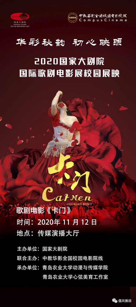本次活动展映的影片是著名戏剧导演弗兰切斯卡·赞贝罗指导的《卡门》。歌剧和电影二者的巧妙结合和碰撞,定能给师生们带来一次独特而美妙的体验,欢迎广大师生前来观看,共同领略一场独特的美育盛宴。