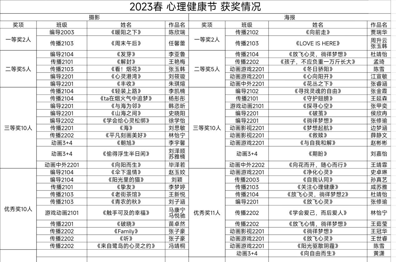 摄影组和海报组获奖名单如下: