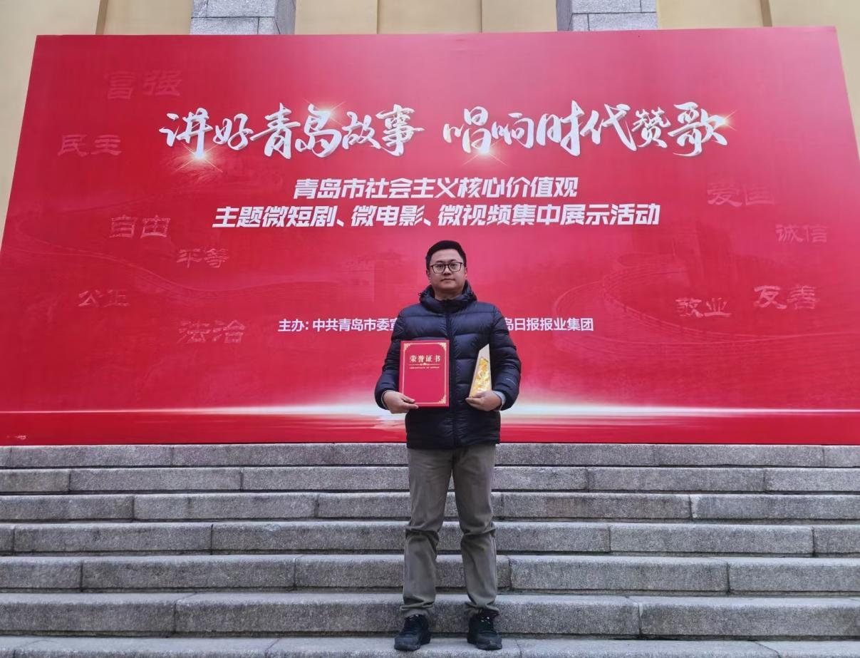 12月5日,由中共青岛市委宣传部主办的“讲好青岛故事 唱响时代赞歌”青岛市社会主义核心价值观主题微短剧、微电影、微视频征集展示活动颁奖仪式于青岛市工人文化宫工人剧场圆满落幕。VSport体育王冲老师的作品《挚爱无息》凭借出色的创作和精湛的导演技艺,在众多参赛作品中脱颖而出,荣获微电影类二等奖。