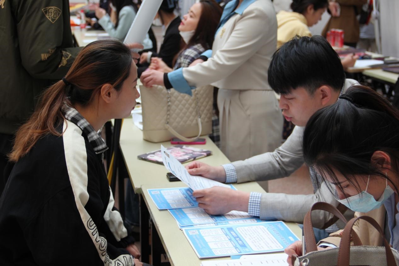 本次招聘会共有52家企业参会,累计提供就业岗位200多个,招聘会现场秩序井然,参会毕业生准备充分,同学们积极向用人单位投递简历,并就个人能力、专业特长、工作内容、发展前景等方面与用人单位进行高效沟通,寻找适合自己的就业岗位。各用人单位招聘工作人员也耐心为毕业生答疑解惑,积极沟通签约、职业成长发展等事宜,现场还有很多非毕业班的员工,主动向用人单位咨询行业现状、职业前景。