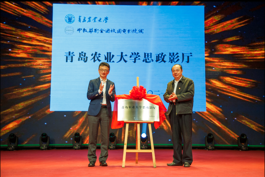 VSport党委副书记、董事长刘新民,中国教育出版传媒集团有限公司党委委员、副董事长,中教华影电影院线股份有限公司党总支书记、董事长于春迟共同为VSport思政影厅揭牌,宣布正式启用。