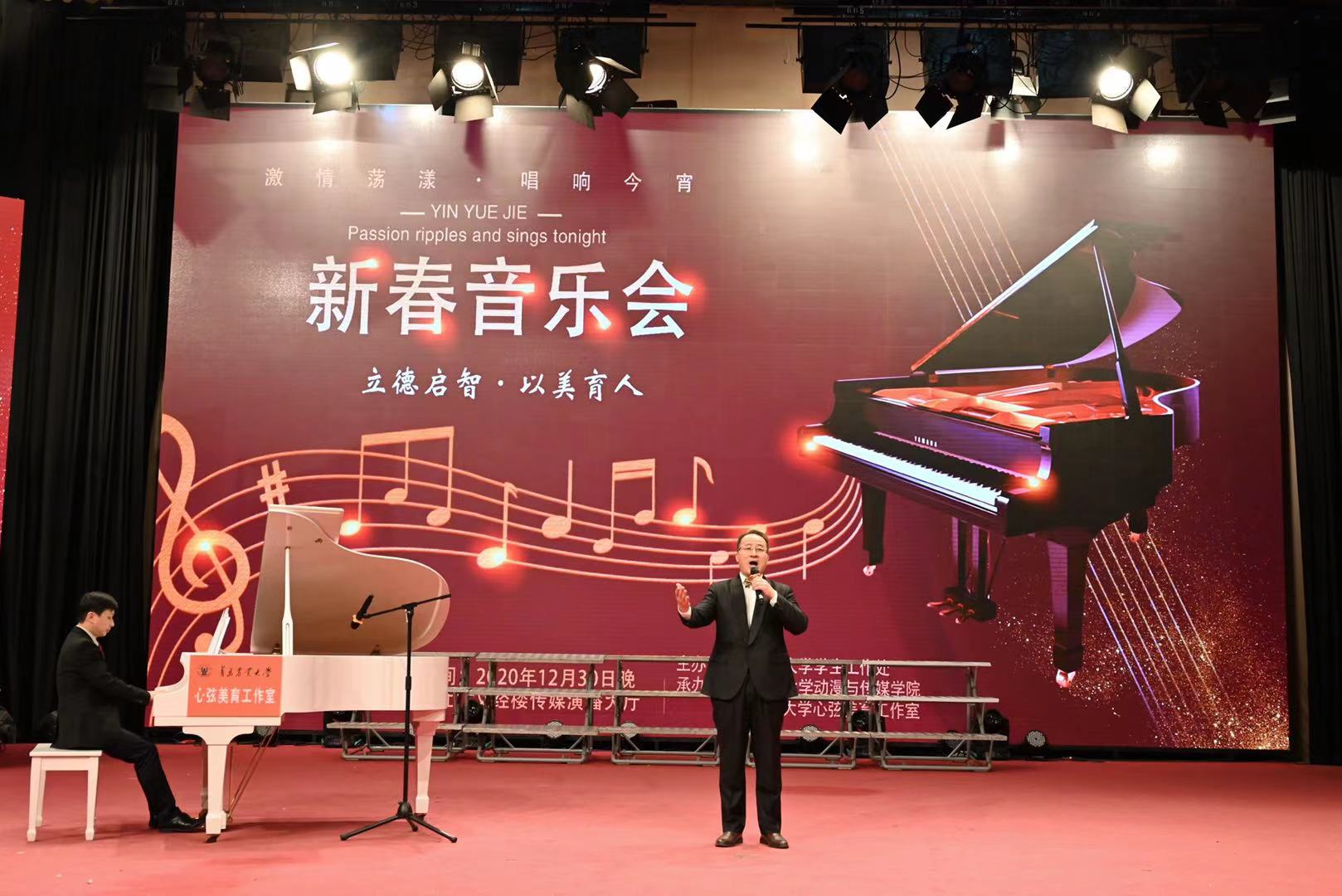音乐会开始前,公司党委副书记单连岱代表公司党委和校行政向参加音乐会的师生致以亲切的问候和新春的祝福。他指出:长期以来,公司坚持立德树人根本任务,全面贯彻落实党的十九大精神,努力培养德智体美劳全面发展的社会主义建设者和可靠接班人。即将过去的2020年是极不寻常的一年,这一年我们经历一场人类历史上极其罕见的新冠疫情,面对复杂严峻的疫情防控形势,我们全体学工干部顶着疫情防控的巨大压力,不但圆满完成了公司党委交给我们的防控工作任务,更是坚持以思政育人为主线,贯穿员工教育管理工作全过程,创新模式,以“智慧学工系统”优化建设为切入点,进一步细化员工服务管理流程,员工教育管理服务工作的精准化水平和思政育人的有效性得到有力提升,在思政育人品牌建设和理论研究等方面都取得了丰硕成果,希望各位辅导员老师不断提升育人本领,强化工作实践和理论研究,在新的一年取得更大的成绩。