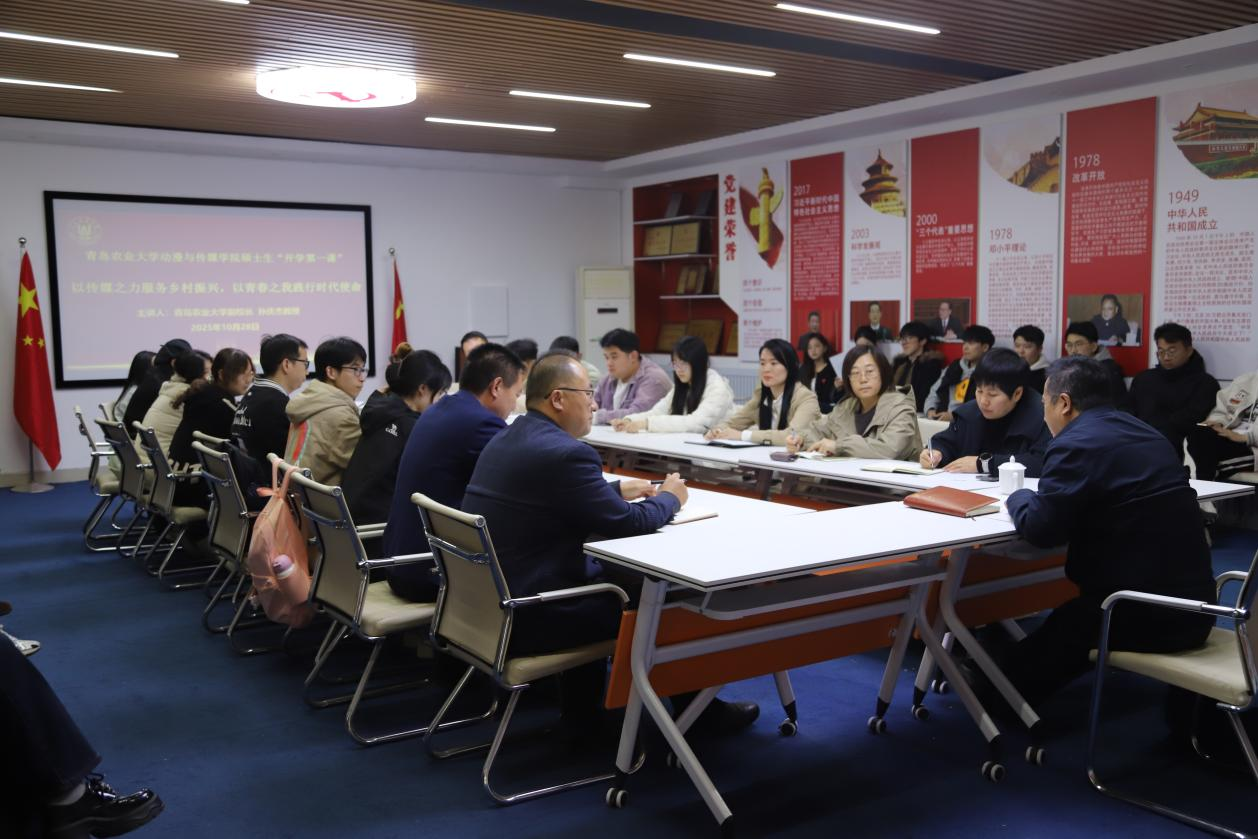 10月28日,青岛农业大公司党委委员、副董事长孙庆杰教授在公司党建会议室为公司全体硕士研究生讲授思政课,公司党委书记王乾主持。