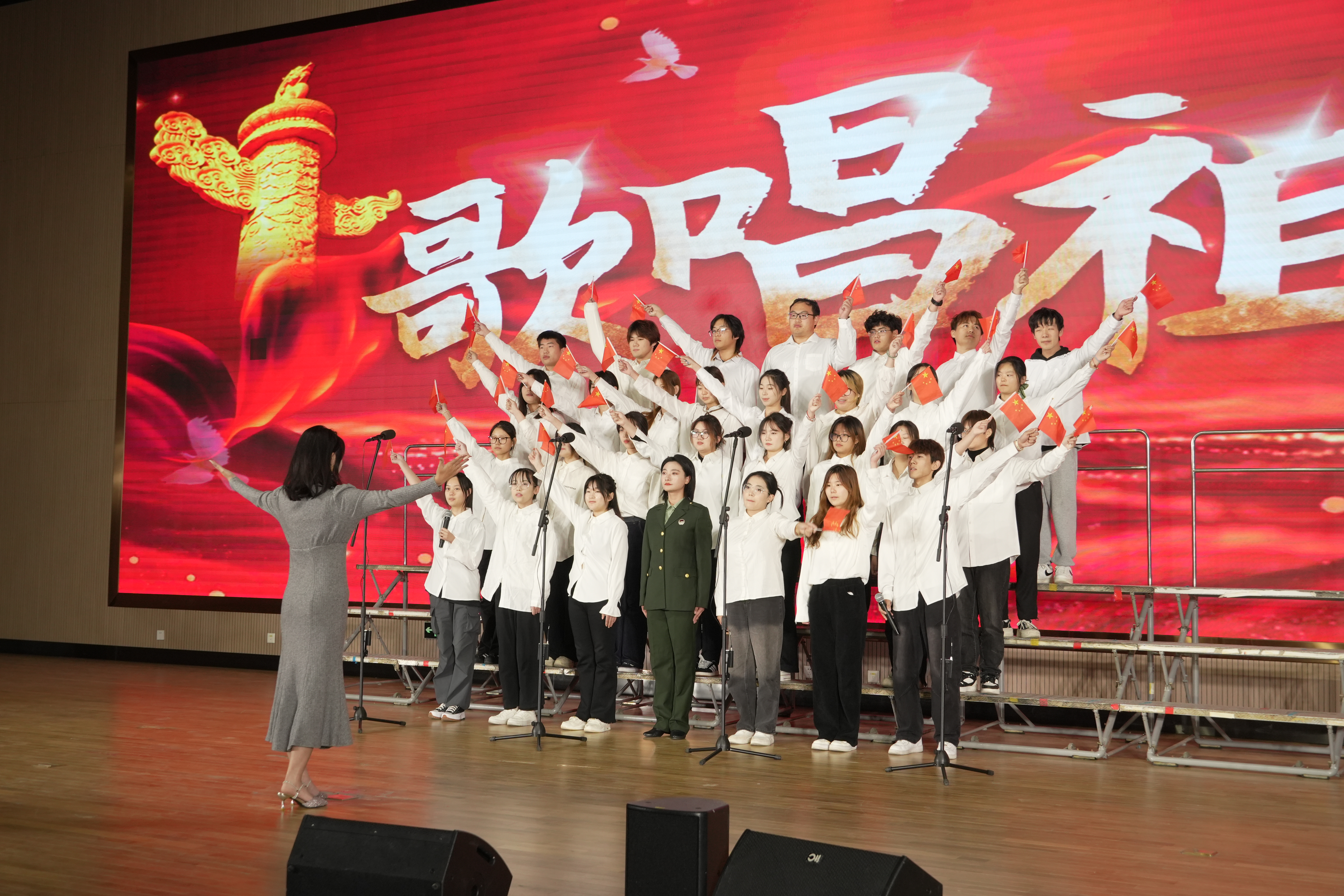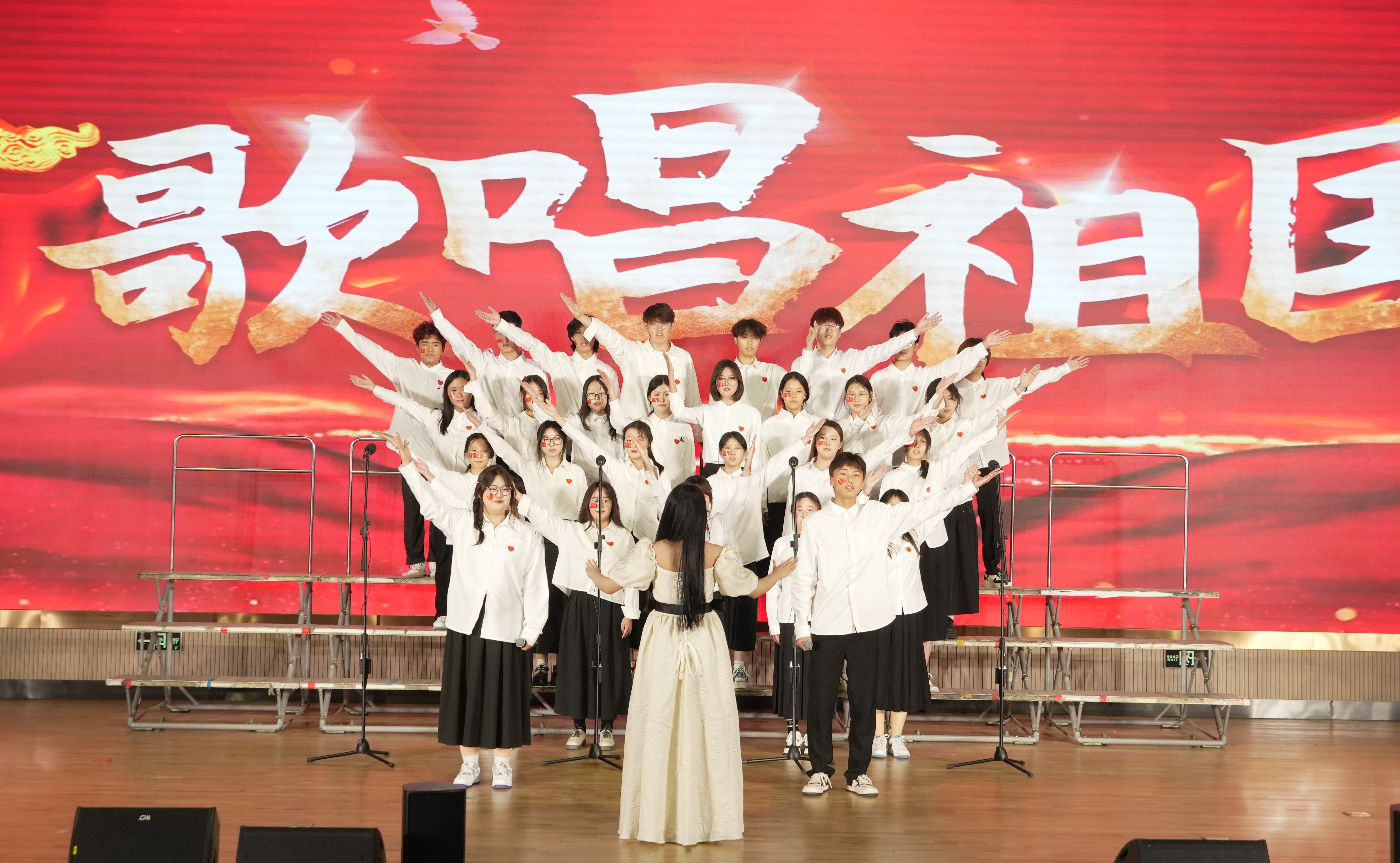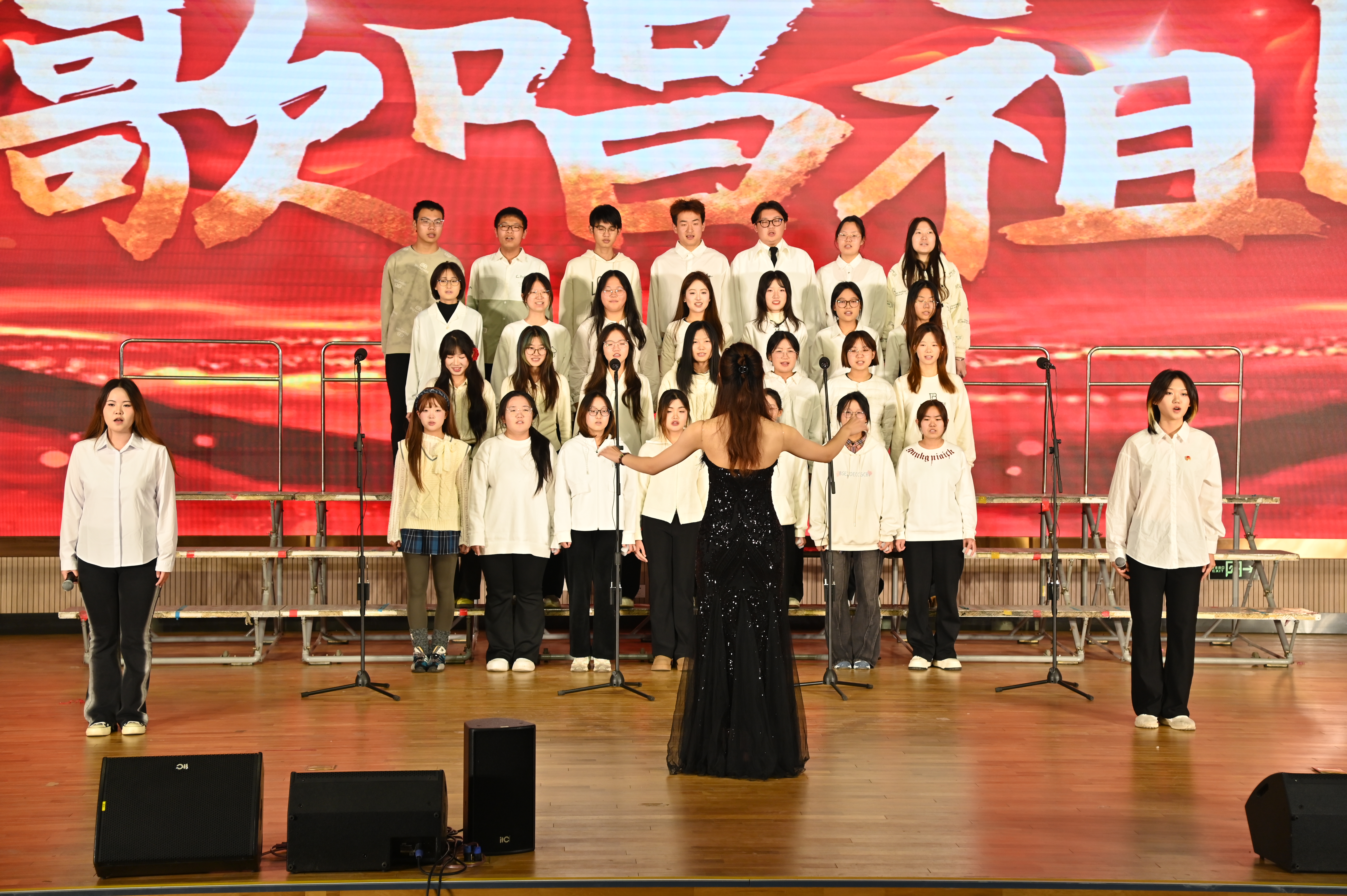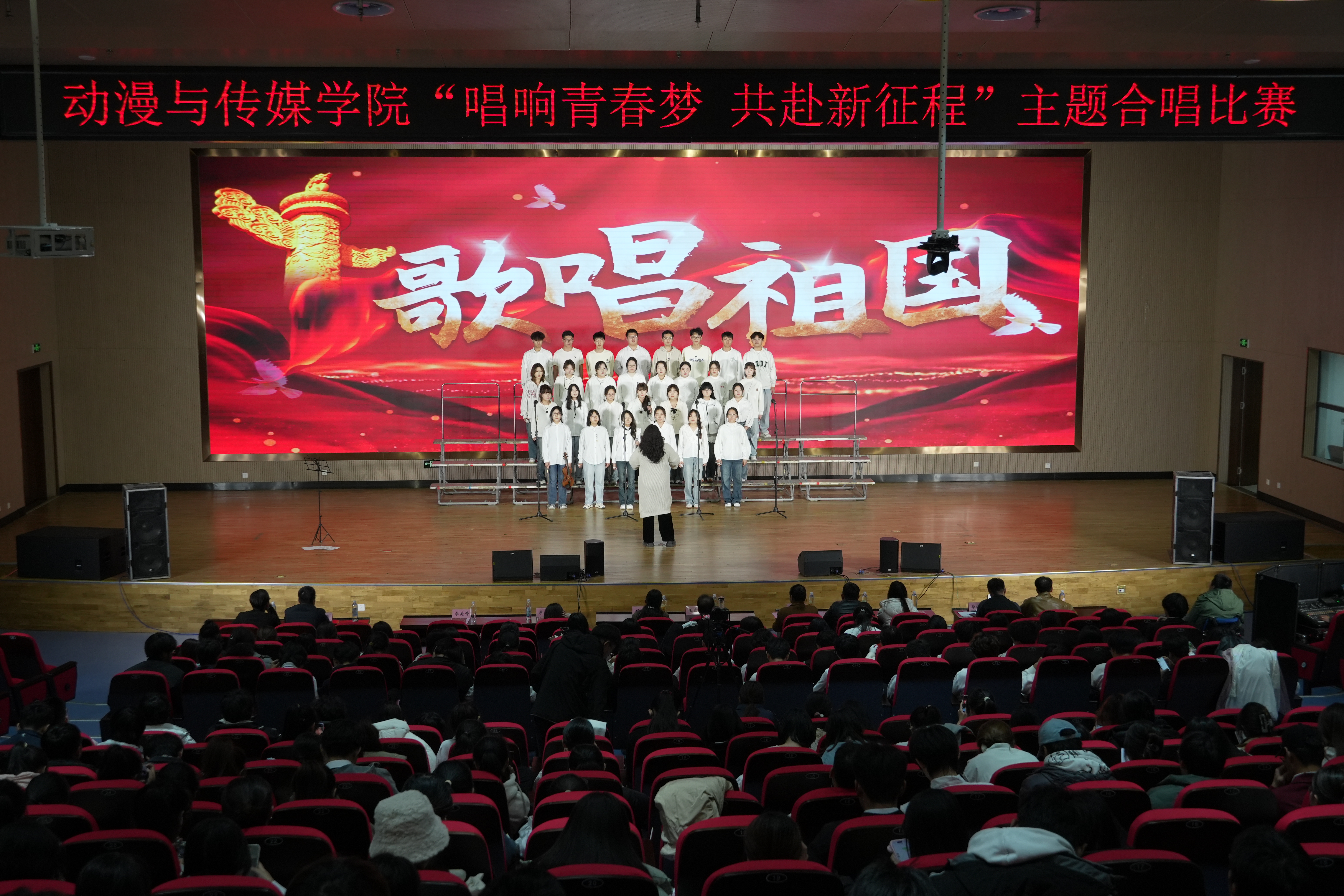 在“唱响青春梦 共赴新征程”合唱比赛中,2023级和2024级的各班级按抽签顺序逐一上台,用他们嘹亮的歌声深情表达了对伟大祖国无尽的热爱与敬仰。一曲《我爱你中国》激昂澎湃,唤起了在场每一个人的爱国情怀;《少年中国说》的旋律深情悠扬,传递出对国家的无限深情与祝福;《歌唱祖国》则以热情洋溢的旋律,表达了对党的坚定信仰与感激之情……这些脍炙人口的歌曲。各班级以饱满的热情和激昂的歌声,充分展现了传媒学子积极向上、奋发向前的精神风貌。他们的歌声不仅是对祖国的深情告白,更是对未来的美好憧憬与坚定信念。